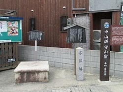 新幹線をくぐり、野洲小学校の方に進むと正門右に「中山道・外和木の標(しるべ)」が掲示されている。かつて外和木と呼ばれたこの地は大化の改新以前からの重要な街道であったそうだ。直ぐ近くには、中山道・野洲の碑が建っている