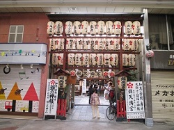 市場はまだ開店したばかりのようで、どの店も慌ただしげだ。錦市場に行ったらぜひこれを、と薦められていた焼鱧などをつまみ食いしながらぶらぶらと一通り端まで歩いてみる。一番端のほうに焼ガキをテーブルで食べさせてくれる錦大安を発見。我が家のお向かいのおじさんに勧められていたところだが、開店は12時とのことなので、少し先の鉾町を散策して時間調整する。