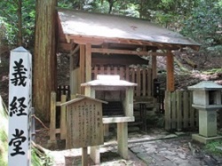 神社の隣、国道脇には、義経が池の水を使って前髪を落して元服した時の元服の池という小さな池も残されている。