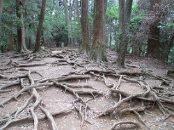 仁王門からは、ほとんど未舗装の山道で、源義経供養塔あたりからは結構傾斜もきつくなる。仁王門から15分ほどで鞍馬寺本殿金堂につく。源義経(牛若丸)が幼少の頃を過ごした寺として一般的には知られているが、鞍馬寺正殿前の「六芒星」の中心に立つとエネルギーを感じることができるというパワースポットとしても有名だそうだ。