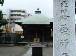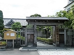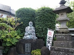 調布駅を出て旧街道を西調布駅近くまで行くと、中央高速との立体交差少し手前に、三代将軍家光から寺領を受けた西光寺がある。仁王門横に、この地にゆかりのある新選組局長近藤勇の座像がある。近藤勇は天保5年(1834)ここ上石原村に生まれた。