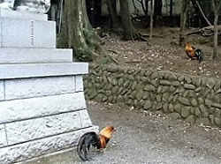 JR南武線を西府橋で跨ぐと旧道は左に反れていく国道と分れる。しばらく進むと、街道沿いに谷保天満宮の大きな鳥居が立っている。境内は大きな木立に囲まれ、参道のところどころに何羽かのチャボがのんびりと遊んでいるのが何とものどかな感じである。石段を下ると拝殿の前に出る。天満宮は菅原道真がご神体で、湯島天神、亀戸天神と並んで関東三天神と称されている。