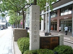 街道を追分に向かって歩くと、横山町、八日町、八幡町と旧宿名に由来する町名が続いている。ビュータワー脇に八日市宿跡碑が立てられている。
