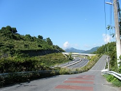 この先、道なりにいくと、やがて中央高速へぶつかる。右折して高速に並行する道をしばらく歩き、高速に架かる鳶ヶ﨑橋を渡る。