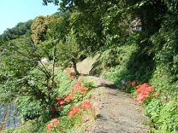 この先は左側がかなり切り立った崖となっていて、途中、座頭ころがしの看板が置かれている。目が見えようと見えまいと、かなり危なっかしいところだ。先日歩いた中山道の碓氷峠にも座頭ころがしというところがあったが、ここは本当に危険を覚えるところだった。