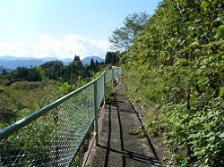 しばらくは県道を道なりに歩き、立場であった山谷集落を過ぎて、鳥沢小学校通学路と看板のある細い急な下り坂を降りて行く。