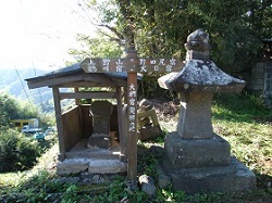 その脇を県道と別れて急な小道を上っていくのだが、その入り口には矢坪坂の古戦場跡の看板が立っている。享禄3年(1530)相模国の北条氏縄の軍勢が甲斐に攻めこみ矢坪坂に進んだ。一方、小山田越中守の手勢が坂の上で待ちかまえ、両者は坂をはさんで対峙し、やがて激戦が展開された。