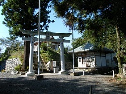 細くて急な道を上って行くと、やがて武甕槌(たけみかづち)神社入口の鳥居前を通過する。