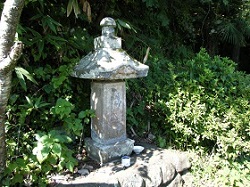 枡形から二回カーブを過ぎると右側に不動明王らしき石像が、その先には白馬不動堂の鳥居がある。