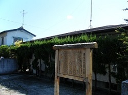 宿場中程の犬目宿碑の近くに、犬目の兵助生家水田屋の案内板が立っている。