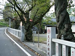 さらに緩やかに上って行くと、大椚の集落に入って行く。右に廿三夜塔を見ながら進むと、小さな祠と石塔が現れ、そこには大椚宿発祥の地と書かれている。