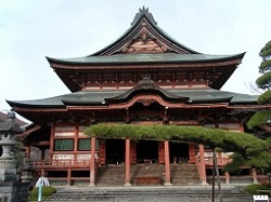 街道に戻って柏尾橋を渡った少し先に大善寺がある。大善寺は、武田勝頼が落ち延びる途中、1泊した寺である。また行基が修行満願の日、夢の中にブドウを持った薬師如来が現れたことから、甲州ブドウ発祥の寺とされる。国道から少し入ったところに山門があり、そこからさらに長い石段を登ったところに国宝の薬師堂がある。