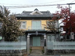道を曲がり終わると、重厚な感じの石川家住宅が右手に見える。明治から大正にかけて建てられた住宅や蔵、塀などが現存していて、繭糸問屋だったという当時の商家の様子を今に伝えている。黒い建物は、塗籠土蔵造という建築様式によるもので、江戸時代の代表的な町屋造りという。
