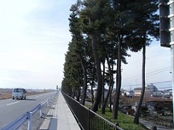 笛吹橋を渡り、河岸に松並木が続く通りを行くとやがて笛吹権三郎の像の立つところに来る。