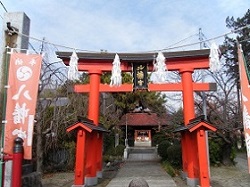 小林公園の斜め前の石和八幡宮は、武田氏の祖・信義の子信光(石和五郎)が建久3年(1192)、鎌倉の鶴岡八幡宮をこの地に勧請して郷の産土神としたもの。武田家滅亡の折り、織田信長により焼失してしまうが、翌年家康により再興されたといわれる。
