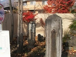 勝沼宿の江戸方口にある上行寺は、門前には勝沼氏館跡がある。