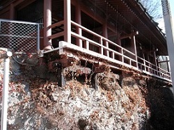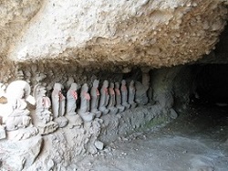 そこに雲岸寺があり、裏手の崖の途中に弘法大師の開基になる窟観音堂が岸壁からせり出して建っている。崖に掘られた洞窟に聖観世音菩薩、弘法大師御尊体、千体地蔵尊のほか多数の石仏が安置されている。