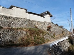 渡って急坂をUターンするように上がって行くと、下円井の集落。ここもこじんまりした集落だが、土塀や石塀が多く、風情がある。道は火の見やぐらのところで軽く枡形になっていて、途中に秋葉山常夜灯が残っている。その向こうに、立派ななまこ壁の門を持つ家が建っている。