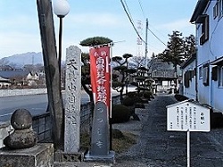 旧街道に出るため竜王駅から一旦国道まで行き、すぐに新町交差点で国道と分れて右に入る。すこし先に、大きな球形の石でできた丸石道祖神が置かれている。丸石神は山梨県とその他ごく一部にしか存在しない珍しい道祖神で、謎の多い文化と言われる。