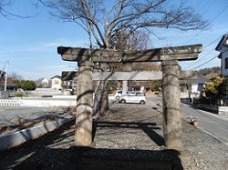 双葉西小を過ぎた右側にちょっと変わった鳥居が目に入る。船形神社の石鳥居といい、柱が太く背が低いずんぐりとしたもので、室町期の遺構として第一に推すべき逸作、と説明にはある。