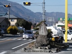 少し先で旧道は国道と別れて右へ分かれているが、その分岐に水難供養塔という石碑が立っている。この辺りは、かつては釜無川の氾濫との戦いが続いた地区で、多くの犠牲者の供養に立てられたものらしい。