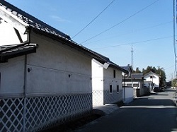 下今井に向かって歩くと、少しずつ蔵のある家があらわれ、枡形のようなカーブを曲がると、寺町と呼ばれる地域になって、土塀の続く屋敷や長屋門を残す家など風情ある街並みとなる。