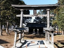 途中、県立射撃場を横目にしばらく道なりに上って行くと、突き当りに再び青木鉱泉への案内板があり、左手には原山神社が見える。この神社の拝殿も本殿も荒れ果てているが、両部鳥居というのはなかなか見かけない珍しいものだ。