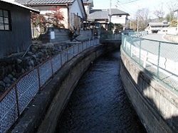 集落に入ると、徳島堰という水路が街道の左手に続いている。今から340年前江戸の徳島兵左衛門の私財により工事が始められ、その後の変遷を経て完成したもので、これにより美田の開発が進み、地域農民の生活は飛躍的な発展をとげたという。
