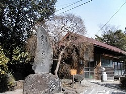 上り坂を進むとすぐ右手の敬冠院入口に髯文字題目碑があり、日蓮上人高座石の案内が出ている。