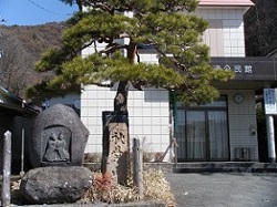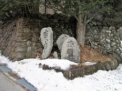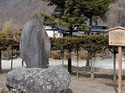 国道の向こう側の旧コンビニ駐車場の脇に、教来石出身の山口素堂の大きな句碑がある。