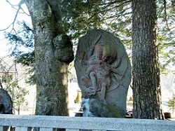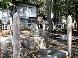 神社横の道祖神は御柱で囲まれていた。