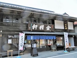 清水町に入って左側にある呉服のかねさは、蔵造りでいかにも老舗の風情が漂う。