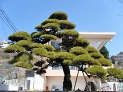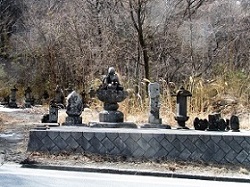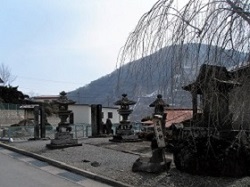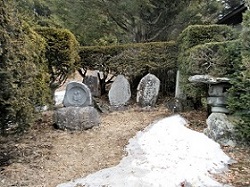 途中、万休院の舞鶴松への案内標識があるが、数年前に枯れてしまって伐採されたと聞いている。観光案内などの写真で見ると、樹齢450年の素晴らしい形の松だったのだが、温暖化の影響でマツクイムシの被害が及んだらしい。残念だが万休院はパスし、万休院東口の石塔群前を通って先に進む。