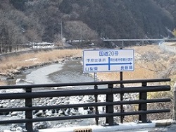 前沢の集落を抜け、前沢上信号で国道20号と合流し、神宮川にかかる濁川橋を渡る。