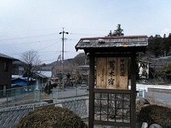 宿入口には、道祖神、常夜燈などの石碑、立派な雲竜松の旧家などが続く。