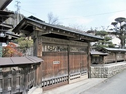 ホテルへの帰り道、何やら趣ある古い建物が見える。丸高味噌・醤油の古い看板がかかっているのは、100年を越える丸高蔵で、並んでいる長い建物は醸造所であろう。こうした建物が、街並みに溶け込んでいるところが、なんとも良い。ちなみに、丸高蔵は神州一味噌発祥の蔵だとのこと。