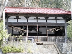 宮川坂室交差点の先で右折して行くと酒室神社がある。酒室神社は、御射山祭りに濁酒を作り、山の神に供える前夜祭をとり行った神聖な地に祀った神で、酒解子之神を祭神とする。