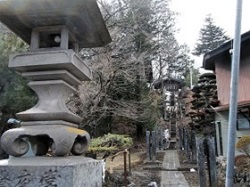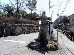 坂を上って行くと左手に天保13年(1842)建立の諏訪神社常夜燈がある。