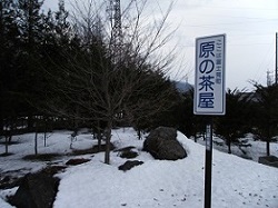舗装路から砂利道に変わった道を進み、ふたたび舗装路に出ると、そこは原の茶屋という。重修一里塚のT字路から真っ直ぐ来ると、ここに合流するはずの地点になる。このあたり、人家がなく不便であったので、明和9年(1772)松田新田の与兵衛が茶屋を始めて以来人家が増えたという。