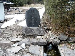 公園の少し先、右手に明治天皇御膳水碑があり、碑の前の水路には、きれいな水が流れている。