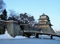 高島城は、瀟洒な印象で、全体に綺麗に整備されている。お濠にまだ雪が多く残っているのは、この地ならではの景色だ。