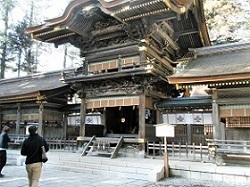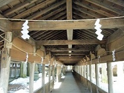 重文の幣拝殿は工事中だったが、拝所から垣間見ると薄暗いところに大きな写真があって、まるで本物と見間違えるほどであった。