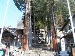 蔵のある旧道を行くと右手に足長神社がある。この神社は、御柱祭で参道石段を登りながら柱を引き上げるので知られている。