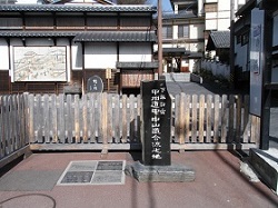 秋葉大権現常夜石灯篭の建つところが本陣の小松屋跡。