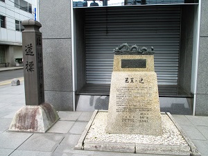 明治安田生命の軒先をかりて、芭蕉の辻碑と道標が置かれている。道標には、「北 津軽三厩迄四十五次百七里二十二丁 奥道中」、「南 江戸日本橋迄六十九次九十三里 奥州街道」と記されている。「芭蕉の辻」の名称は、松尾芭蕉と関係無いことは確かだが、その由来については諸説ある。