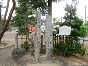 私の今回の旅の一日目の一番の目的は、芭蕉が目指したのと同じく、この武隈の松を訪ねることであった。ところが、竹駒神社の芭蕉句碑やその横の立派な松を眺めているうちに、ついうっかり、これが武隈の松だと思い込んでしまい、すっかり目的達成した気分で旧道をそのまま駅の方まで進んでしまった。武隈の松は、実際には、竹駒神社から岩沼駅の方に少し行ってちょっとばかり旧街道から外れて、現在二木の松史跡公園となっているところにあったのである。旅を終えて帰宅してから気が付いたが、後の祭りであった。