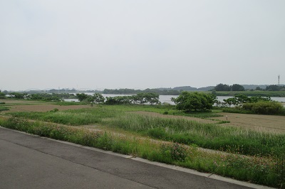 国道を渡って堤防に上ってみると、この先で太平洋に流入する阿武隈川の広大な河川敷が広がっている。