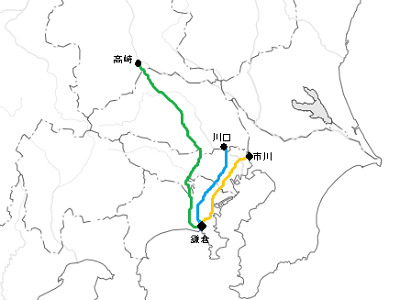 上道は、鎌倉から化粧坂を越え、境川沿いを北上して多摩丘陵を越え、武蔵国府を通り、武蔵野台地から比企丘陵を経て高崎に至る。その先、信濃・越後へと向かう。
