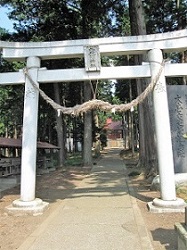 この神社周辺は、女影(おなかげ)原古戦場跡。建武2年(1335)、北条高時の遺児・時行が鎌倉幕府再興をかけて信濃で挙兵した中先代の乱で、鎌倉に向かった時行軍が女影原で足利尊氏の弟義直軍と激しい戦を行ったところである。
