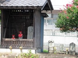 越辺川を渡った今宿交差点には、地蔵堂と石仏が並んでいる。今宿は昔の苦林宿に対して新しい宿という意味であり、江戸時代になってから開けたという。